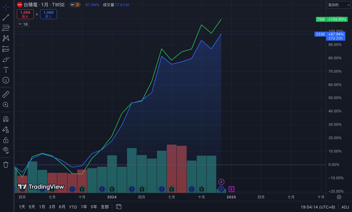 哪個是低點?哪邊有折價?該如何溢價?另外一個問題,假設你在多年前擁有台積電股票且台股、美股都有,在現在的今天(2024年12月初)你需要用錢,你會賣掉台灣的2330還是美國的TSM。答案在圖表裡,自行參考