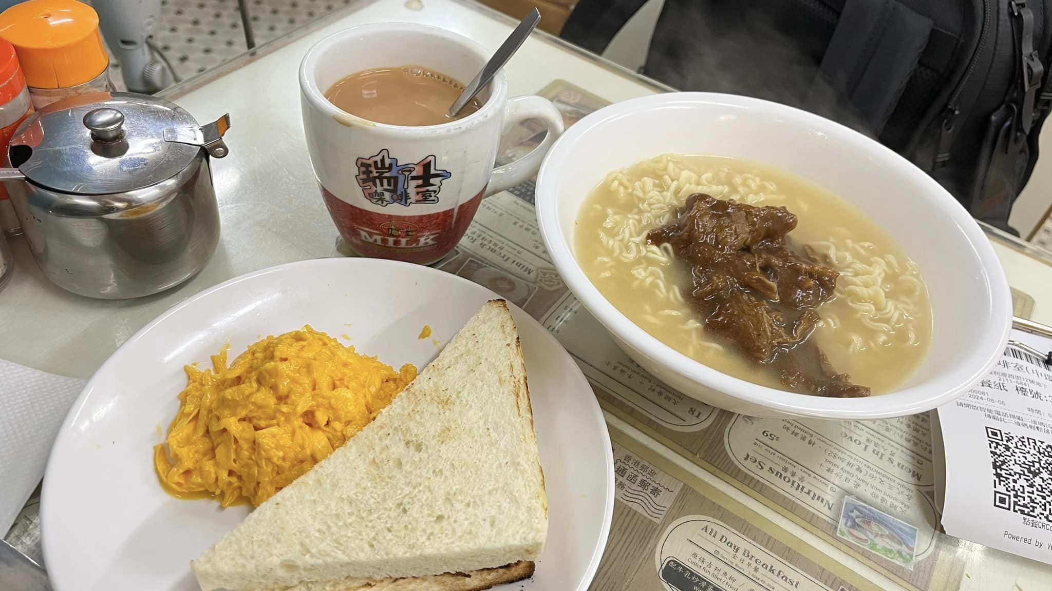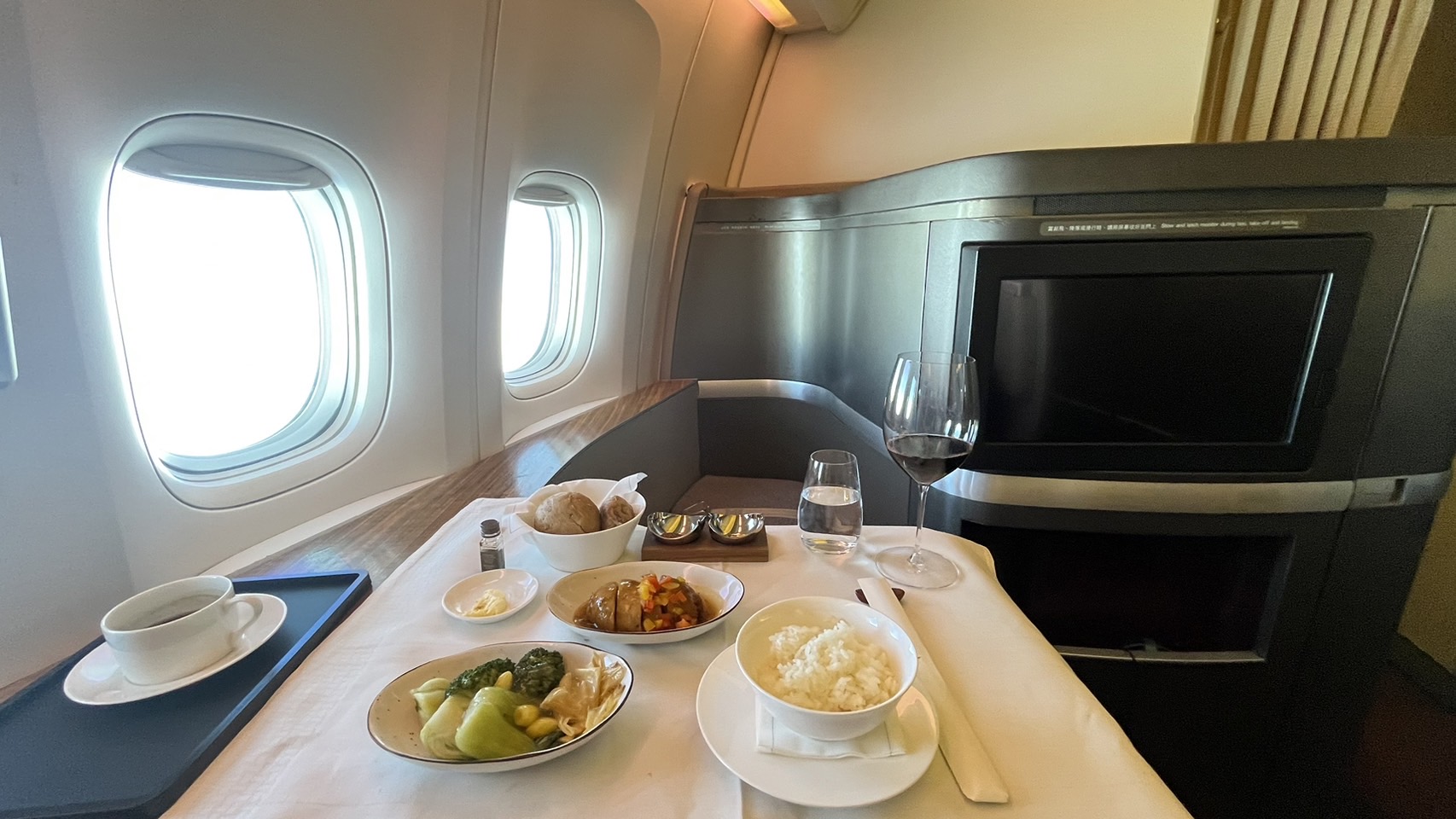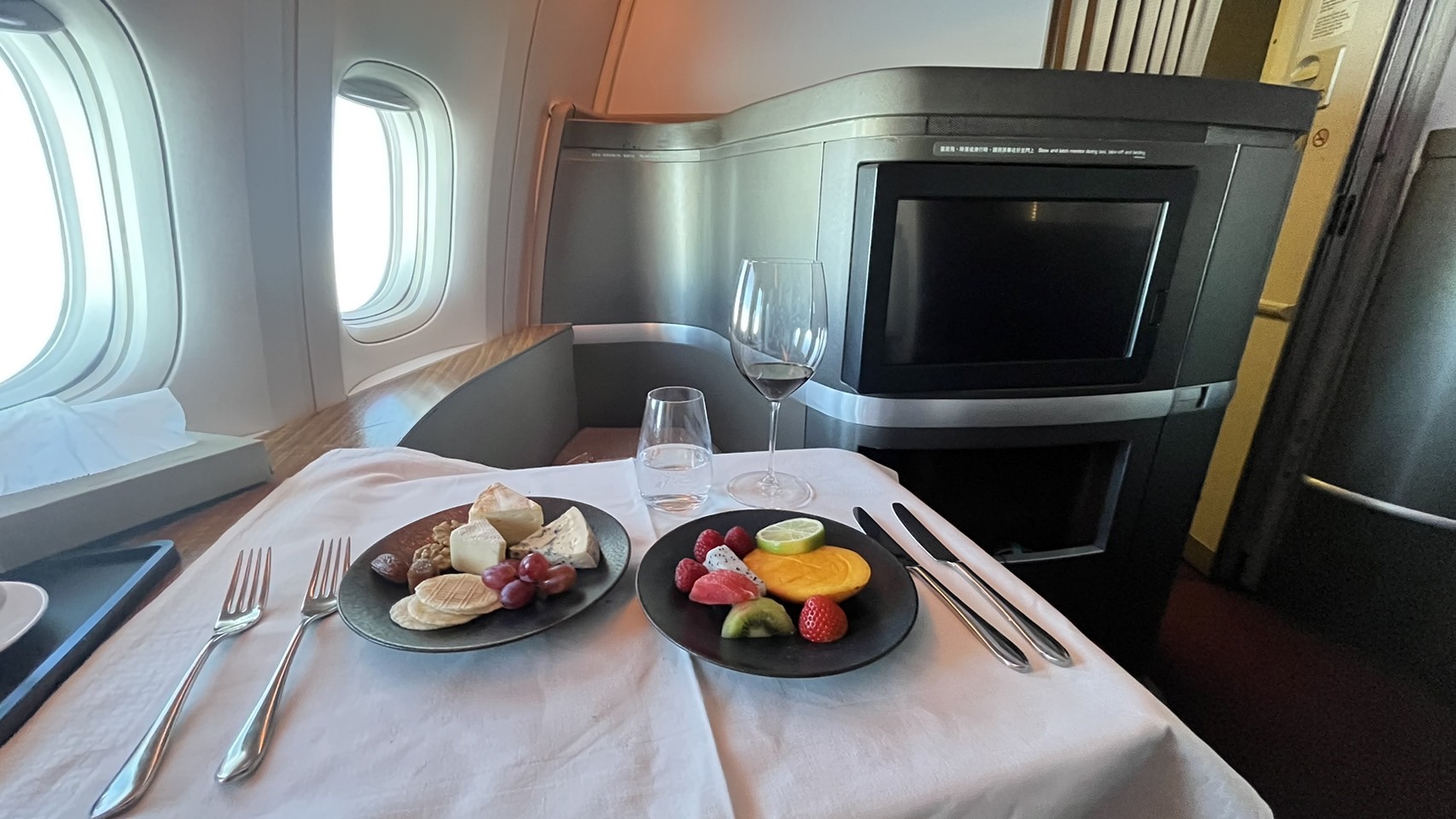 CX549 HND-HKG頭等艙連載 。最後還有上起司跟水果還有甜點,跟一盒他們的巧克力。我最後點了一隻2003年的餐後酒、帶有葡萄乾蜂蜜牛奶和松露的香氣。#2003年我才高中一年級因到香港轉機 早晨的中環繁榮依舊,冰室隨便來個早餐,我現在喝港奶都不加糖。這樣才能體會人生的苦澀與絲滑