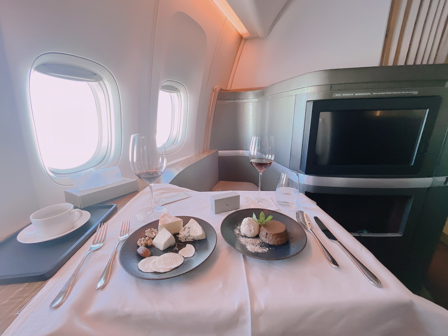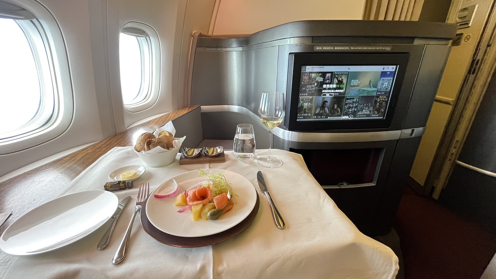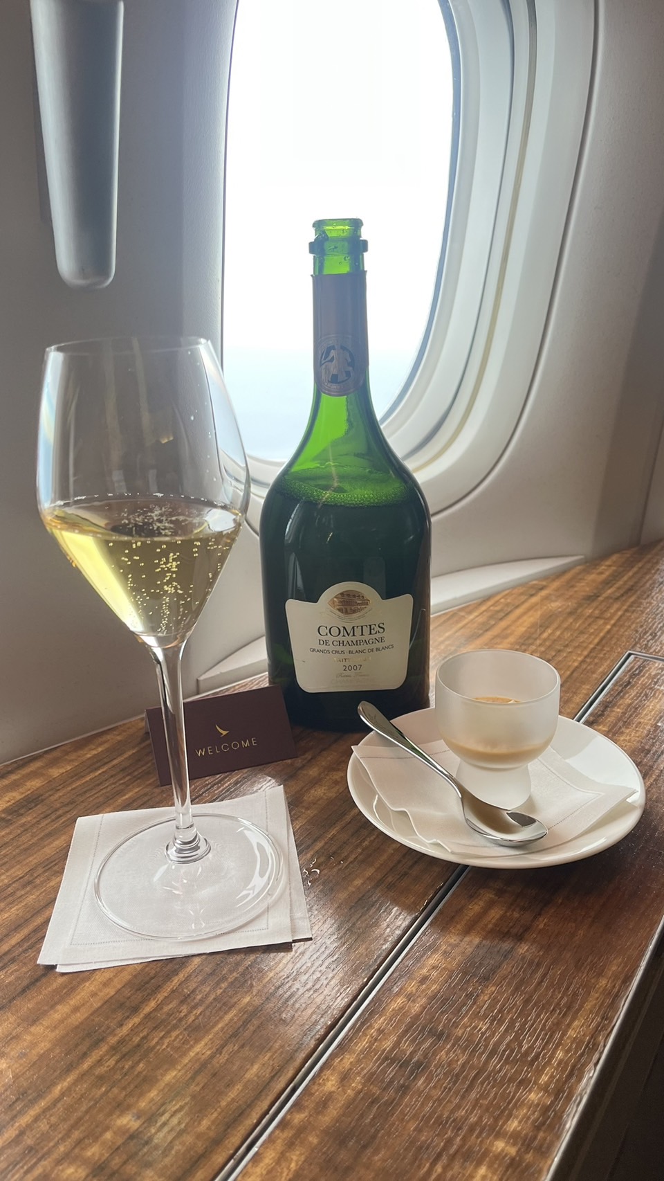30000英尺高空 沒有地標股市漲跌跟我無關我:蒜頭麵包 謝謝空服員:葉先生你不用選啊,整盤全部都你的,我只是要跟你介紹今天的前菜 跟你的酒#我以為我在搭經濟艙今天搭酒 泰廷爵「香檳伯爵」2007年