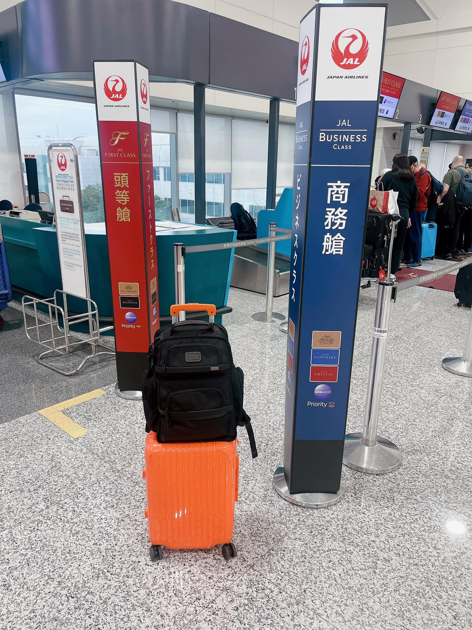 日本航空商務艙、網路上也是很多人分享過了。我這邊簡單帶一下之後跟大家分享用點數降低搭乘成本的做法,本次旅程是先成台北到東京,下一段是東京到廣州。櫃檯均可享有優先登機,不過桃園這邊使用的是華航貴賓室,有牛肉麵可以吃,但最厲害的還是國泰航空的貴賓室。(商務來說的話)