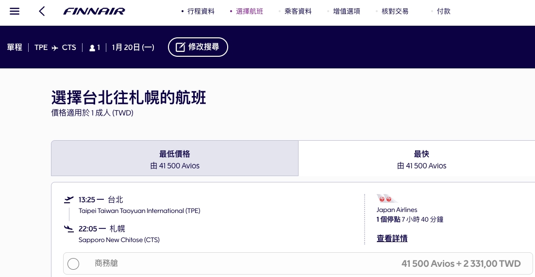 日本航空過年時間 單程北海道商務艙,則算台幣約15000元左右,來回三萬台幣,也算是一個不過的方法跟選擇