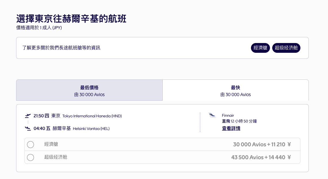 芬蘭航空avios哩程取得及計畫應用(高階)