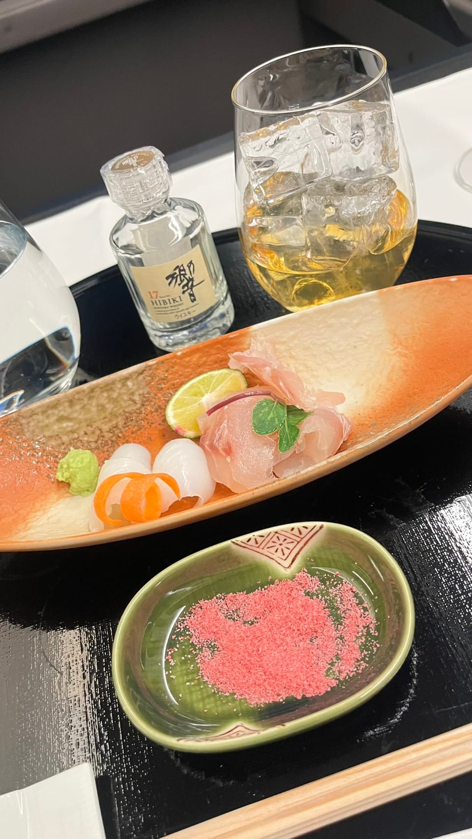 機上從開始搭餐的而今+田酒+後面的響17+泰斯卡18 都沒有讓我失望,最後因為太膩了,我拿來做Highball。
