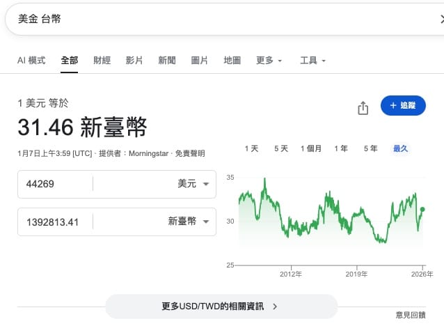 目前2026/1/ 7 帳上資金為VT 38796 /VGLT 3533/VGIT 1940 合計 44269