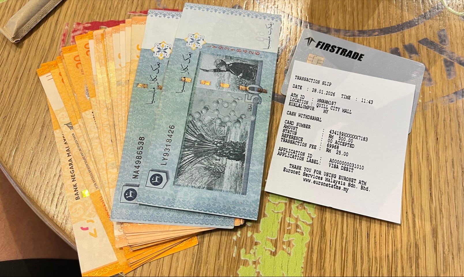 本次發文的時間正在吉隆坡旅行,才領500馬幣出來一大堆,雖會扣25不過高幾天會補回,我們就來看看匯率如何吧