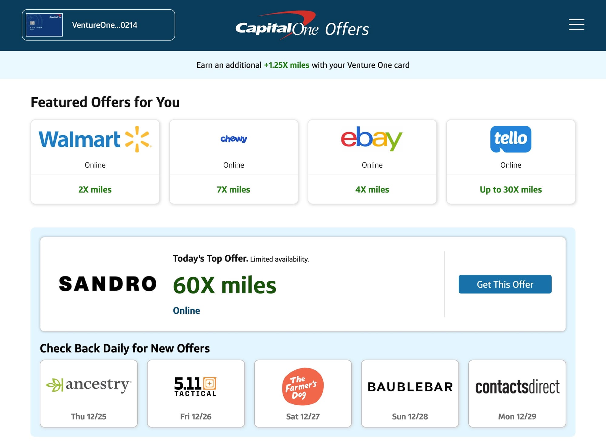 - 里程可直接用於Capital One Travel預訂旅行(1里程=1美分)。